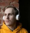 A group of people are seated indoors, focused intently on working with laptops. The environment is informal and relaxed, with individuals sitting on beanbags and surrounded by dim lighting. Most people appear absorbed in their screens, suggesting a collaborative or hackathon-style event.